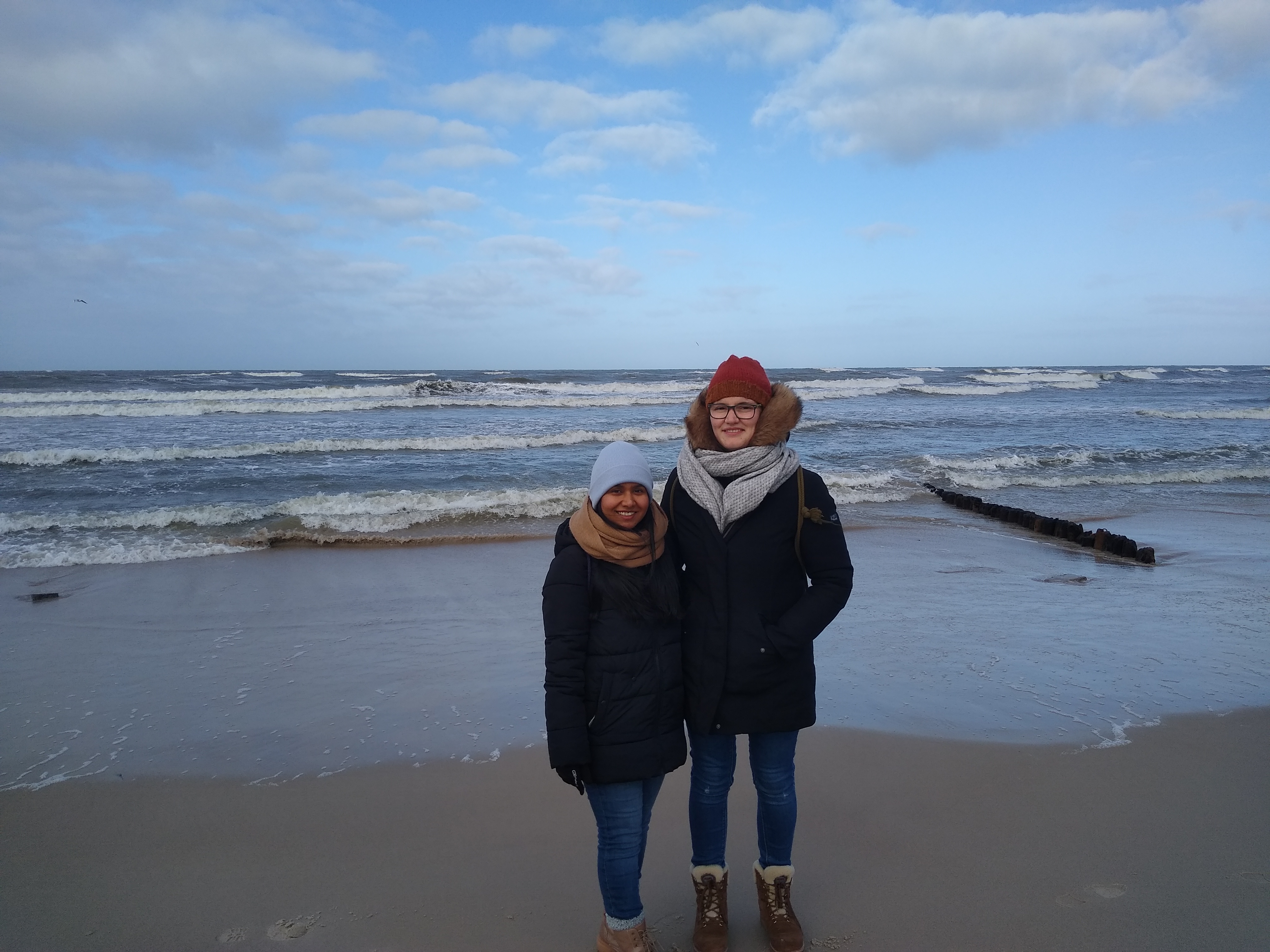 Am nächsten Tag trafen wir alle Brüder und Schwestern der Gemeinde in Słupsk beim Gottesdienst. Die Wiedersehensfreude war riesig und wir verbrachten unsere Tage mit ausgezeichneter Bruderschaft. Mariusz kochte an einem Tag ein leckeres Mittagessen für uns, anschließend machten wir noch gemeinsam einen Spaziergang am Strand von Ustka. Trotz der kalten Temperaturen und dem mäßigen Wetter in der ersten Woche ließen wir uns die gute Laune nicht verderben und verbrachten die Zeit mit Spielen, aufbauenden Gesprächen, gemeinsamem Kochen, Filmabenden und Jamsessions in Pastor Konrad und Lucias Haus. Die erste Woche unseres Aufenthaltes klang mit der Taufe von Halina aus, die seit kurzem die Versammlungen der Gemeinde in Słupsk besucht.