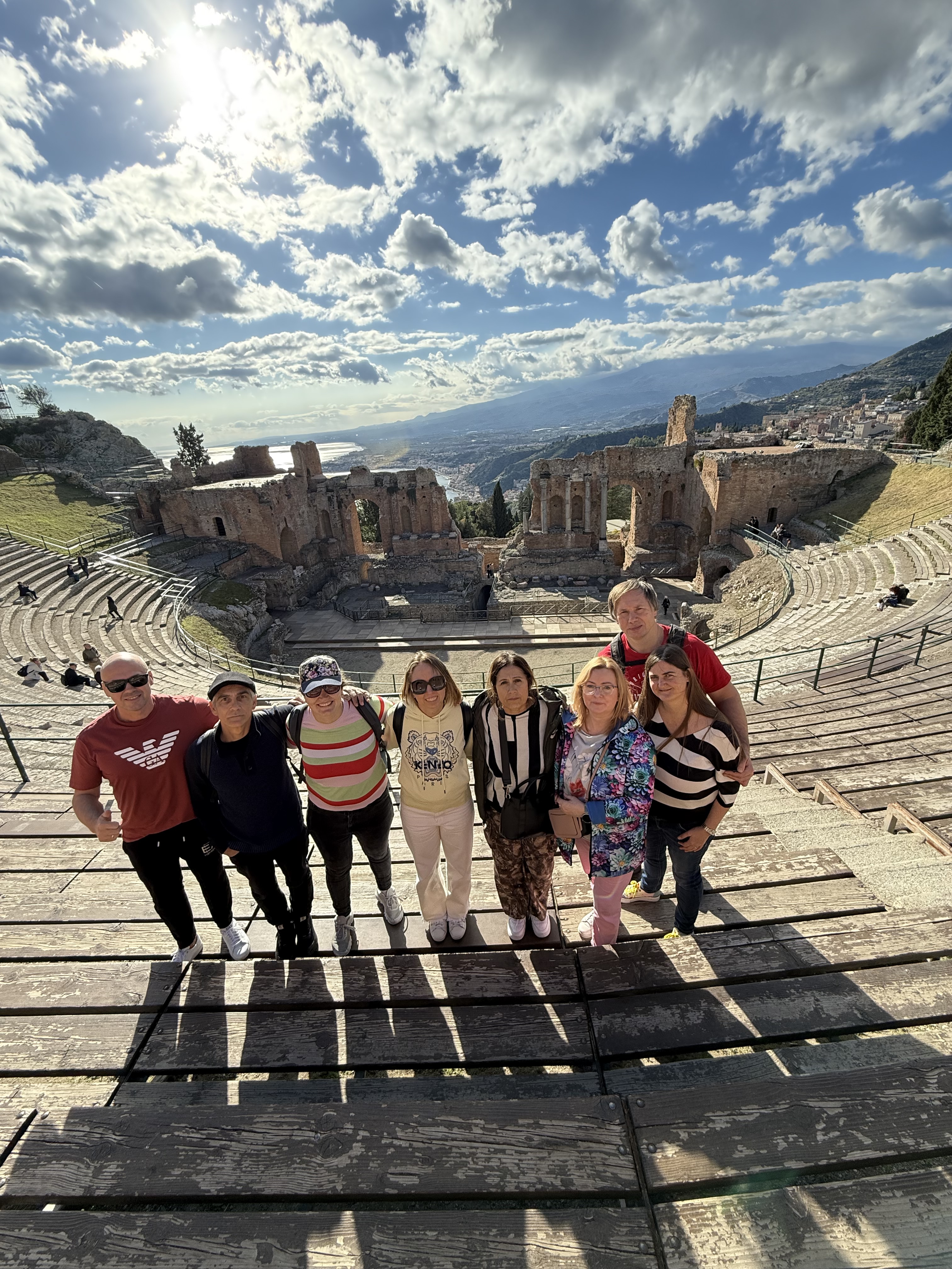 Während Rita am Samstag ein leckeres Abendessen für uns vorbereitete, verbrachten wir den Tag in Taormina, einer schönen antiken Stadt mit einem Amphitheater, und genossen die Sonne und die milden Temperaturen. Am Abend trafen wir uns bei Rita zu Hause zur Bruderschaft. Rita servierte uns viele sizilianische, hausgemachte Köstlichkeiten, und wir sprachen über den Herrn. Rita erzählte uns auch ein wenig aus ihrem Leben und zeigte uns Fotos aus der Vergangenheit. Voll Freude und im Geist aufgebaut kehrten wir spät am Abend in unsere Wohnung zurück.
